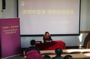 随后,赵薇老师从五个方面讲述了她在附中学习、生活、成长的经历,向大家传颂附中的故事和优良传统。